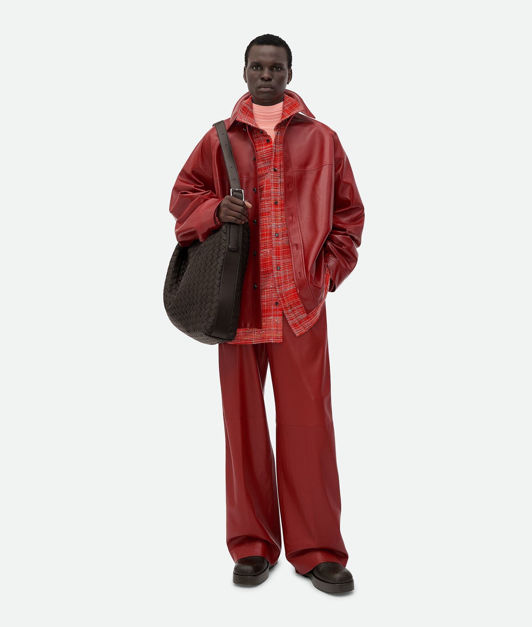 Oversized nappa leather blouson. Product Details - Nappa leather blouson - Button closure - Unlined - Oversized fit - Material: 100% lambskin - Color: Rosewood - Made in: Italy - Product code: 800793V3WT06155 Size & Fit - Model is 189 cm|6'2" and is wearing a Bottega Veneta size 46