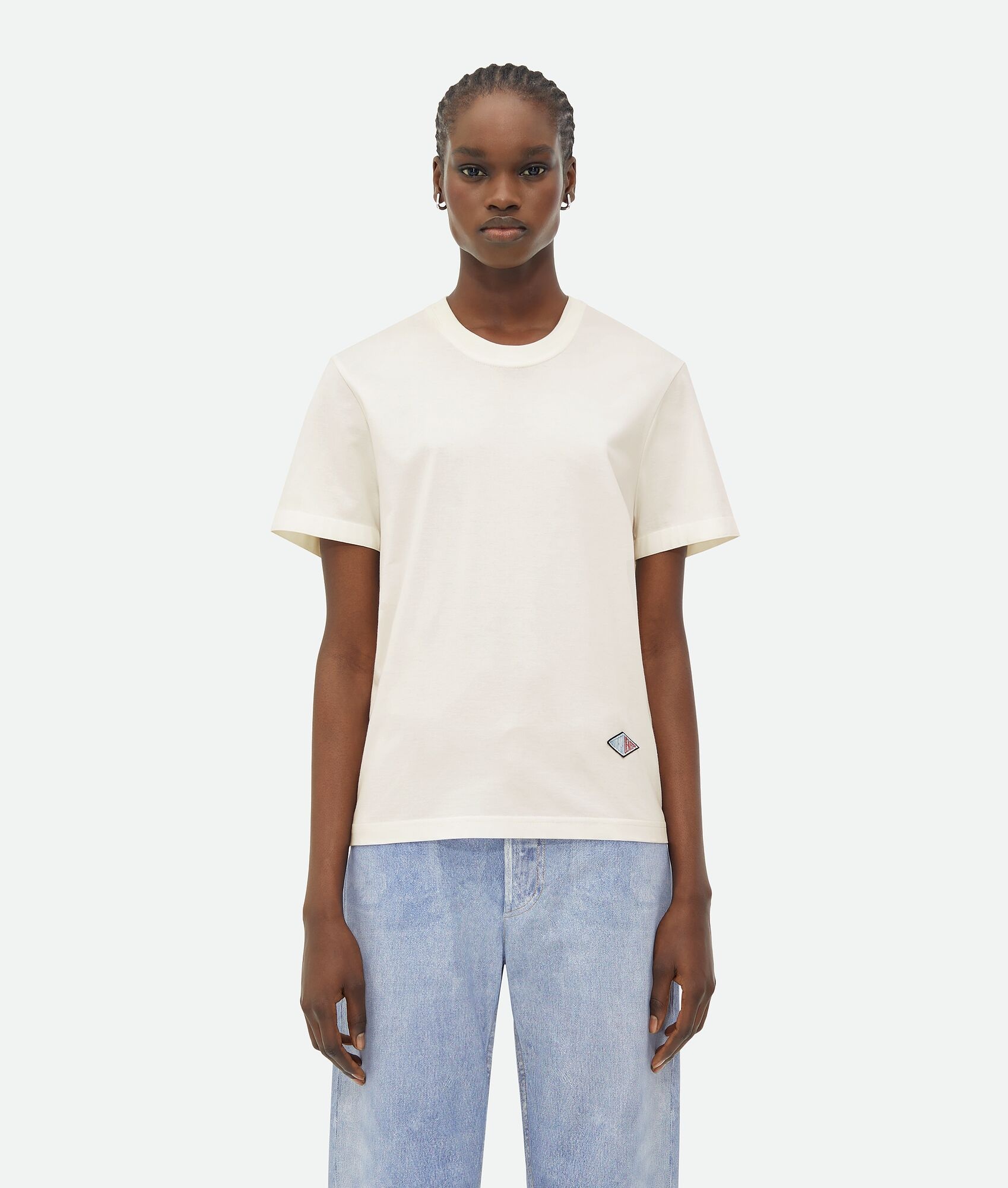 T-shirt in light cotton jersey. Product Details - Light cotton jersey T-shirt - Special label on the front - Relaxed fit - Material: 100% Cotton - Color: Chalk - Made in: Italy - Product code: 796156V4DE09071 Size & Fit - Model is 177 cm | 5'9" and is wearing a Bottega Veneta size S