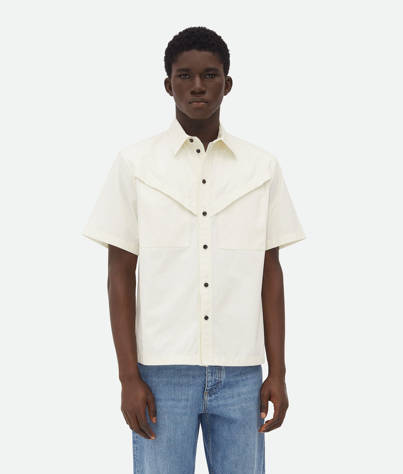 Shirt in light cotton twill. Product Details - Light cotton twill shirt - Button closure - Regular fit - Material: 100% cotton - Color: Frosting - Made in: Italy - Product code: 816765V4CS03043 Size & Fit - Model is 190 cm|6'2" and is wearing a Bottega Veneta size 46