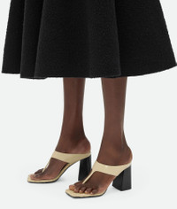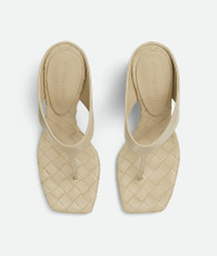 Thong sandal in leather with signature Intrecciato insole. Product Details - Leather thong sandal with Intrecciato insole - Material: Calfskin - Lining: Lambskin - Color: Light Butterscotch - Rubber-injected leather outsole - Heel: 8.5 cm | 3.3” - Made in: Italy - Product code: 817500V3H909306