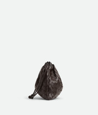 Intrecciato calfskin leather dustbag with transformable strap. Product Details - Single main compartment - Drawstring closure with leather loop attachment for shoulder carry - Material: calfskin - Lining: Nylon - Color: Fondant - Height: 23 cm | 9.1" - Width: 32 cm | 12.6" - Depth: 1 cm | 0.4" - Strap drop: 35 cm | 13.8” - Made in: Italy - Product code: 796728V3IV12132