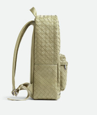 Backpack in soft Intrecciato leather. Product Details - Medium Intrecciato leather backpack - Single exterior zippered pocket - Single interior laptop compartment - Zipper closure - Material: calfskin, polypropylene, polyester - Lining: Suede - Color: Travertine - Hardware: Silver finish - Height: 46 cm | 18.1" - Width: 30 cm | 11.8" - Depth: 14 cm | 2.6" - Handle drop: 6 cm | 2.4" - Made in: Italy - Product code: 730732V2HL22919