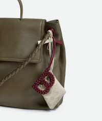 Micro Dustbag in Intrecciato calf leather with drawsting closure and loop attachment. Product Details - Intrecciato calfskin leather charm - One main compartment - Drawstring closure - Leather loop attachment with snap button - Lining: Nylon - Color: Sea Salt - Hardware: Gold finish - Made in: Italy - Product code: 843903V3IV09197 Material - Material: Calfskin Size & Fit - Height: 11 cm | 4.3" - Width: 8.5 cm | 3.3" - Depth: 1 cm | 0.4" - Strap drop: 20 cm | 7.9"