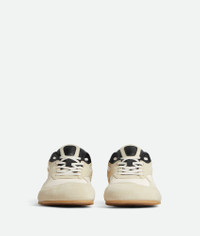 Low-top lace-up sneaker in soft suede and lightweight nylon. Product Details - Suede and nylon lace-up sneaker with leather trims - Material: Calfskin, lambskin, polyester, polyamide - Lining: Lambskin - Color: Sea Salt/Black - Rubber outsole - True to size - Made in: Italy - Product code: 838373V3MS29166