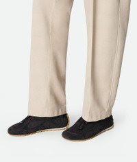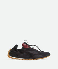 Product Details - Suede and nylon sneaker with leather trims - Drawstring closure - Lining: Lambskin - Color: Black/Dark Apple Candy - Rubber outsole - Made in: Italy - Product code: 856046V65D11021 Material - Material: Calfskin, polyester Size & Fit - True to size