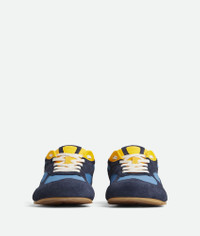 Low-top lace-up sneaker in soft suede and lightweight nylon. Product Details - Suede and nylon lace-up sneaker with leather trims - Material: Calfskin, lambskin, polyester, polyamide - Lining: Calf leather - Color: Abyss/Ice/Egg Yolk - Rubber outsole - True to size - Made in: Italy - Product code: 838384V3MS24290