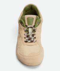 Low-top lace-up sneaker in soft suede and lightweight nylon. Product Details - Suede and nylon lace-up sneaker with leather trims - Lining: Lambskin - Color: Tufo/Matcha - Rubber outsole - Made in: Italy - Product code: 838384V3MS29725 Material - Material: Calfskin, lambskin, polyester, polyamide Size & Fit - True to size