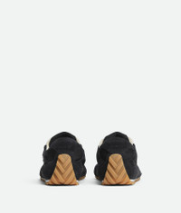 Low-top lace-up sneaker in soft suede and lightweight nylon. Product Details - Suede and nylon lace-up sneaker with leather trims - Material: Calfskin, lambskin, polyester, polyamide - Lining: Lambskin - Color: Black - Rubber outsole - True to size - Made in: Italy - Product code: 838373V3MS21000