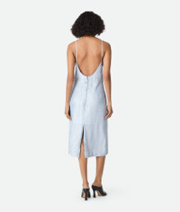 Midi dress in fringed patent leather. Product Details - Patent leather fringe cut midi dress - Invisible zip closure - Fully lined - Material: 100% Calfskin - Color: Sky Blue - Made in: Italy - Product code: 819952V5C004350 Size & Fit - Model is 180 cm | 5'10" and is wearing a Bottega Veneta size 38