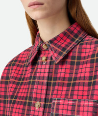 Shirt in soft nubuck with printed tartan effect. Product Details - Printed nubuck shirt - Tartan check effect - Special label on the interior - Button closure - Unlined - Oversized fit - Material: 100% calfskin - Color: Red/Black - Made in: Italy - Product code: 821321V4LT08912 Size & Fit - Model is 177 cm | 5'9" and is wearing a Bottega Veneta size 38