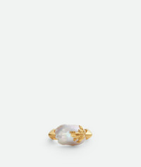 Ring in 18k gold-finished sterling silver with baroque pearl and frog detailing. Product Details - 18k gold-finish sterling silver ring with freshwater pearl - Width: 10.5 mm | 0.4" - Thickness: 13millimeters - Material: Sterling silver, pearl - Color: White - Made in: Italy - Product code: 826975V721A9000