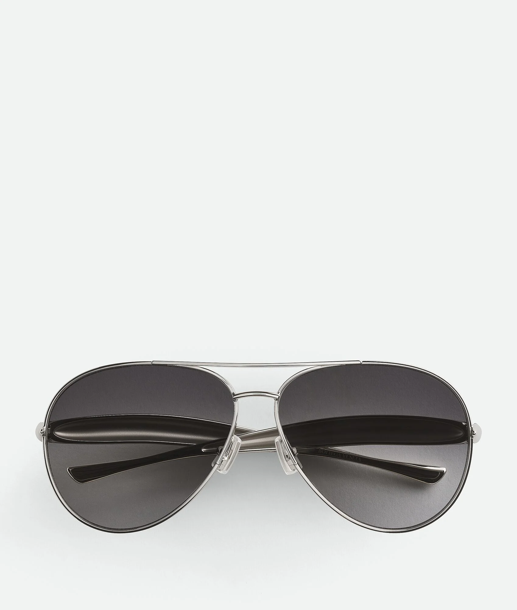 Aviator sunglasses in metal with sculptural sardine shape temples. Product Details - Temples with signature Sardine shape - Lenses made from polyamide with 39% bio-based content - BV1305S 008 - Color: Silver/Grey - Made in: Japan - Product code: 779517V44508107 Material - Material: Metal