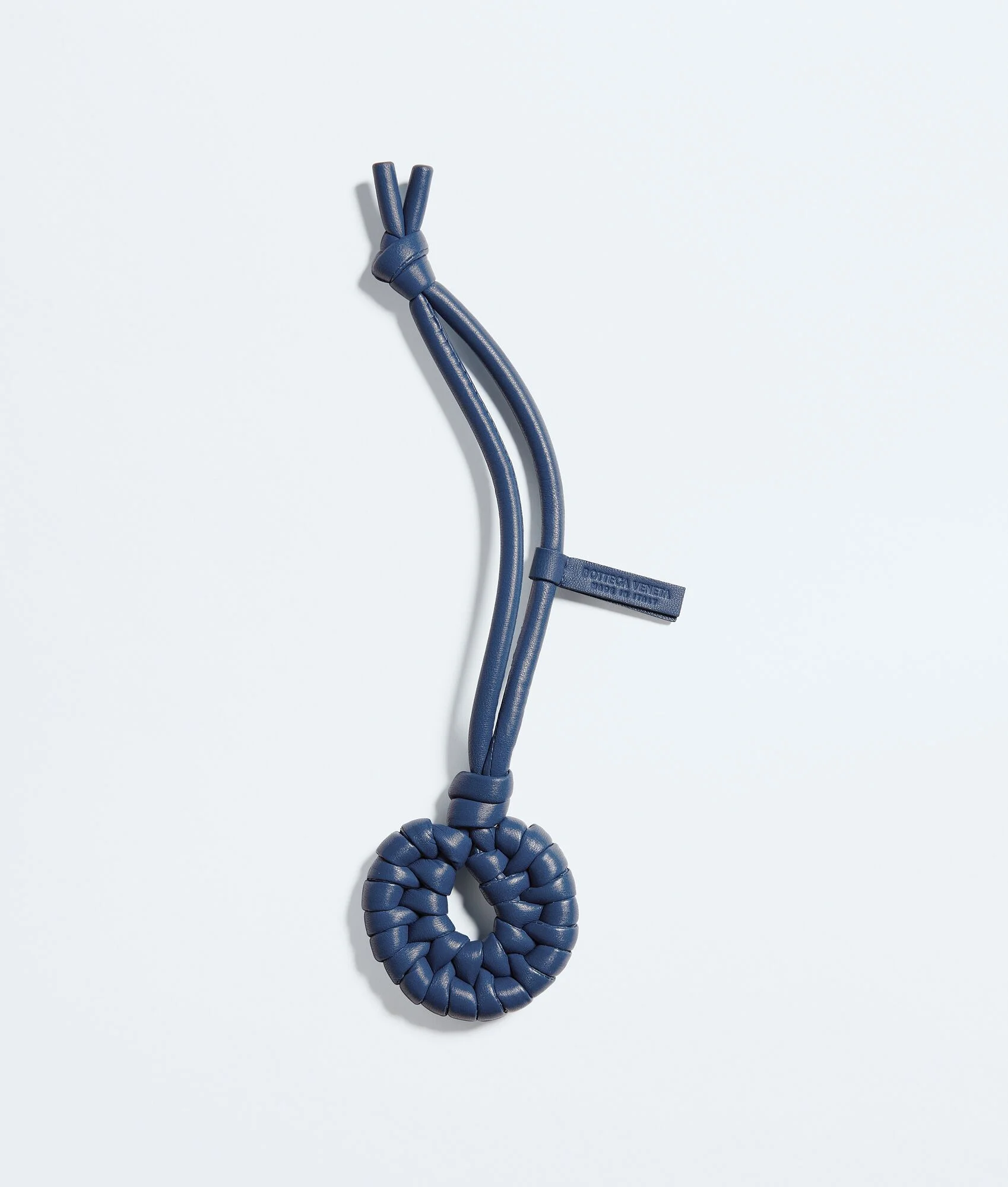 Product Details - Intreccio nappa leather knot charm with leather lanyard - Bottega Veneta leather tag - Leather lanyard that attaches to any handle - Color: Blue Venezia - Lining: Unlined - Made in: Italy - Product code: 867410V3D804015 Material - Material: lambskin Size & Fit - Height: 29 cm | 11.4" - Width: 11 cm | 4.3" - Depth: 0.5 cm | 0.2" - Handle Drop: 17 cm | 6.7"