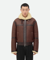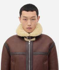 Aviator blouson in Auckland shearling. Product Details - Auckland shearling aviator blouson - Oily effect - Zipper closure - Material: 100% lambskin - Color: Bitter Chocolate/Birch - Made in: Italy - Product code: 808937V4VO18262 Size & Fit - Model is 188 cm|6'2" and is wearing a Bottega Veneta size 46