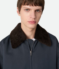 Bomber jacket in silk and cotton twill, featuring a detachable shearling collar. Product Details - Silk and cotton twill bomber jacket - Detachable shearling collar - Zipper closure - Lined - Regular fit - Color: Abyss - Made in: Italy - Product code: 833838V5PT04140 Material - Material: 57% cotton, 43% silk Size & Fit - Model is 190 cm | 6'2" and is wearing a Bottega Veneta size 46
