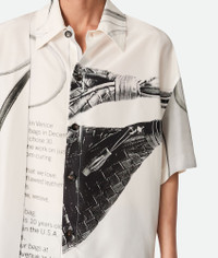 Short sleeved shirt in silk with vintage campaign print. Product Details - Silk short sleeved shirt - Vintage campaign print - Button closure - Relaxed fit - Material: 100% Mulberry silk - Color: Chalk/Black - Made in: Italy - Product code: 819949V5MT09060