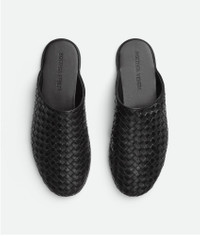Open-back Intrecciato leather slippers. Product details • Open-back Intrecciato leather slippers Material: 100% Lambskin • Lining: Lambskin • Color: Black • Biodegradable leather outsole Made in: Italy