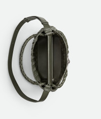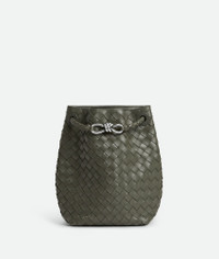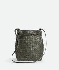 Product Details - Small Intrecciato leather bucket bag with sliding shoulder strap - Intrecciato leather internal pocket - Adjustable and detachable cross-body strap - Lining: Lambskin bonded Intrecciato - Color: Pickle - Hardware: Vintage Silver - Made in: Italy - Product code: 855759VCPP13297 Material - Material: Lambskin Size & Fit - Height: 30 cm (11.8") -Width: 18.5 cm (7.3") -Depth: 11 cm (4.3") -Handle drop: 25 cm (9.8") -Strap drop: 45 cm (17.7")