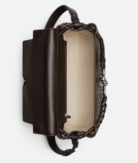 Messenger in Intrecciato leather with signature knot detail featuring an adjustable Product Details - Intrecciato leather small messenger with adjustable and detachable cross-body strap - Two interior flat open pockets and one zipped pocket - Flap closure - Material: calfskin - Lining: Canvas - Color: Fondant - Hardware: Vintage Silver finish - Height: 20 cm | 7.9” - Width: 29 cm | 11.4” - Depth: 13 cm | 5.1” - Strap drop: 58 cm | 22.8” - Made in: Italy - Product code: 815781V2HLD2364