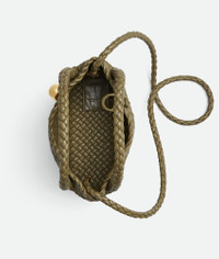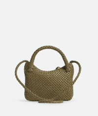 Cross-body bag in Intreccio leather with sculptural sphere detail and detachable Product Details - Small Intreccio leather cross-body bag with detachable strap - Single compartment - Flap closure with muse brass sphere embellishment - Material: lambskin - Lining: Unlined - Color: Algae - Hardware: Brass finish - Height: 16.5 cm | 6.5” - Width: 20 cm | 7.9” - Depth: 7 cm | 2.7” - Handle drop: 8.5 cm | 3.3” - Strap drop: 45 cm | 17.7” - Made in: Italy - Product code: 776755V2EZ42937