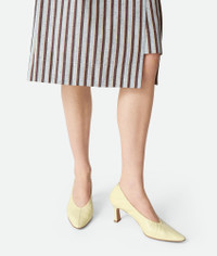 Elasticated slip-on pump with supple construction in shiny calfskin leather. Product Details - Elasticated leather slip-on pump - Lining: Lambskin - Color: Camomile - Rubber-injected leather outsole - Heel: 6 cm | 2.4" - Made in: Italy - Product code: 837884V3H907138 Material - Material: Calfskin
