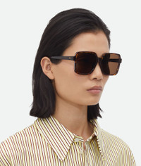 Square sunglasses made with Eastman Acetate Renew, an acetate with 27% recycled content. Product Details - Alternative fit available - BV1317SK 002 - Color: Havana/Brown - Made in: Italy - Product code: 799387V2Q302819 Material - Material: Eastman acetate renew, including 27% recycled material