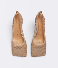 Mesh and leather pumps. Product details • Mesh and leather pumps • Chain embellishment Material: 50% Calf, 50% Polyamide • Unlined • Color: Beige • Hardware: Gold finish • Rubber-injected leather outsole • Flatform: 9 cm | 3.5" Made in: Italy