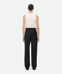 Trousers in subtle striped wool. Product Details - Subtle striped wool trousers - Straight leg - Sartorial internal waistband - Zip, hook and button closure - Material: 60% cotton, 35% viscose, 5% polyamide - Color: Black/Dark Blue - Made in: Italy - Product code: 749976V36K01292 Size & Fit - Model is 188 cm|6'2" and is wearing a Bottega Veneta size 46