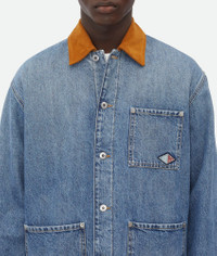 Padded jacket in vintage indigo washed denim. Features a wool lining and contrasting Product Details - Vintage indigo wash denim padded jacket with wool lining - Contrasted suede collar - Special label on the chest pocket - Button closure - Lined - Regular fit - Material: 100% cotton - Color: Mid Blue - Made in: Italy - Product code: 813522V42W04715 Size & Fit - Model is 190 cm|6'2" and is wearing a Bottega Veneta size 46