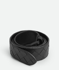 Intrecciato calfskin leather belt. Product Details - Prong closure - Our VN Preserve calfskin leather is crafted using the BioBasedLeather® process, which ensures a limited presence of petrol-based components and exclusive reliance on renewable energy sources. - Material: calfskin - Lining: Calfskin - Color: Black - Hardware: Black matt finish - Height: 3.5 cm | 1.4" - Depth: 0.5 cm | 0.2” - Made in: Italy - Product code: 799046V4KF18984