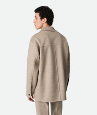 Overshirt in lightweight double wool and cashmere. Product Details - Lightweight double wool and cashmere overshirt - Button closure - Regular fit - Color: Sandshell Melange - Made in: Italy - Product code: 830104V3OO02783 Material - Material: 80% wool, 20% cashmere Size & Fit - Model is 186 cm|6'1" and is wearing a Bottega Veneta size 46