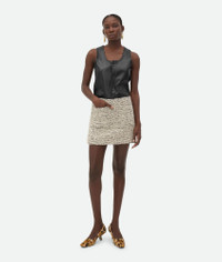 Mini skirt in bi-colour wool boucle. Product Details - Bi-color wool boucle mini skirt - Zipper closure - Fully lined - Material: 88% wool, 6% mohair, 6% polyamide - Color: Black/White - Made in: Italy - Product code: 813032V4LW01069 Size & Fit - Model is 181 cm | 5'11" and is wearing a Bottega Veneta size 38
