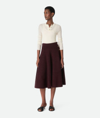 A-line skirt in wool boucle with metal knot button detailing. Product Details - Wool boucle A-line skirt - Metal knot buttons closure - Color: Oxblood Melange - Made in: Italy - Product code: 812471V4WQ02151 Material - Material: 100% Wool Size & Fit - Model is 180 cm | 5'11" and is wearing a Bottega Veneta size S