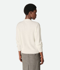Cardigan in lightweight wool rib with knot button detailing. Product Details - Lightweight wool rib cardigan - Metal knot buttons - Regular fit - Color: Chalk - Made in: Italy - Product code: 835337V5L709071 Size & Fit - Model is 179 cm | 5'10" and is wearing a Bottega Veneta size S