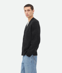 Tailored cardigan in wool with notebook fabric lining. Product Details - Wool tailored cardigan - Button closure - Notebook fabric lining at center back - Regular fit - Material: 57% wool, 23% polyamide, 19% viscose, 1% elastane - Color: Dark Grey Melange - Made in: Italy - Product code: 803874V4TK08813 Size & Fit - Model is 188 cm | 6'2" and is wearing a Bottega Veneta size S