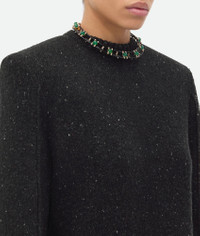 Tailored jumper in wool with shoulder pads. Product Details - Wool tailored jumper - Shoulder pads detail - Regular fit - Material: 57% wool, 23% polyamide, 19% viscose, 1% elastane - Color: Dark Grey Melange - Made in: Italy - Product code: 799140V4TK08813 Size & Fit - Model is 179 cm | 5'10" and is wearing a Bottega Veneta size S