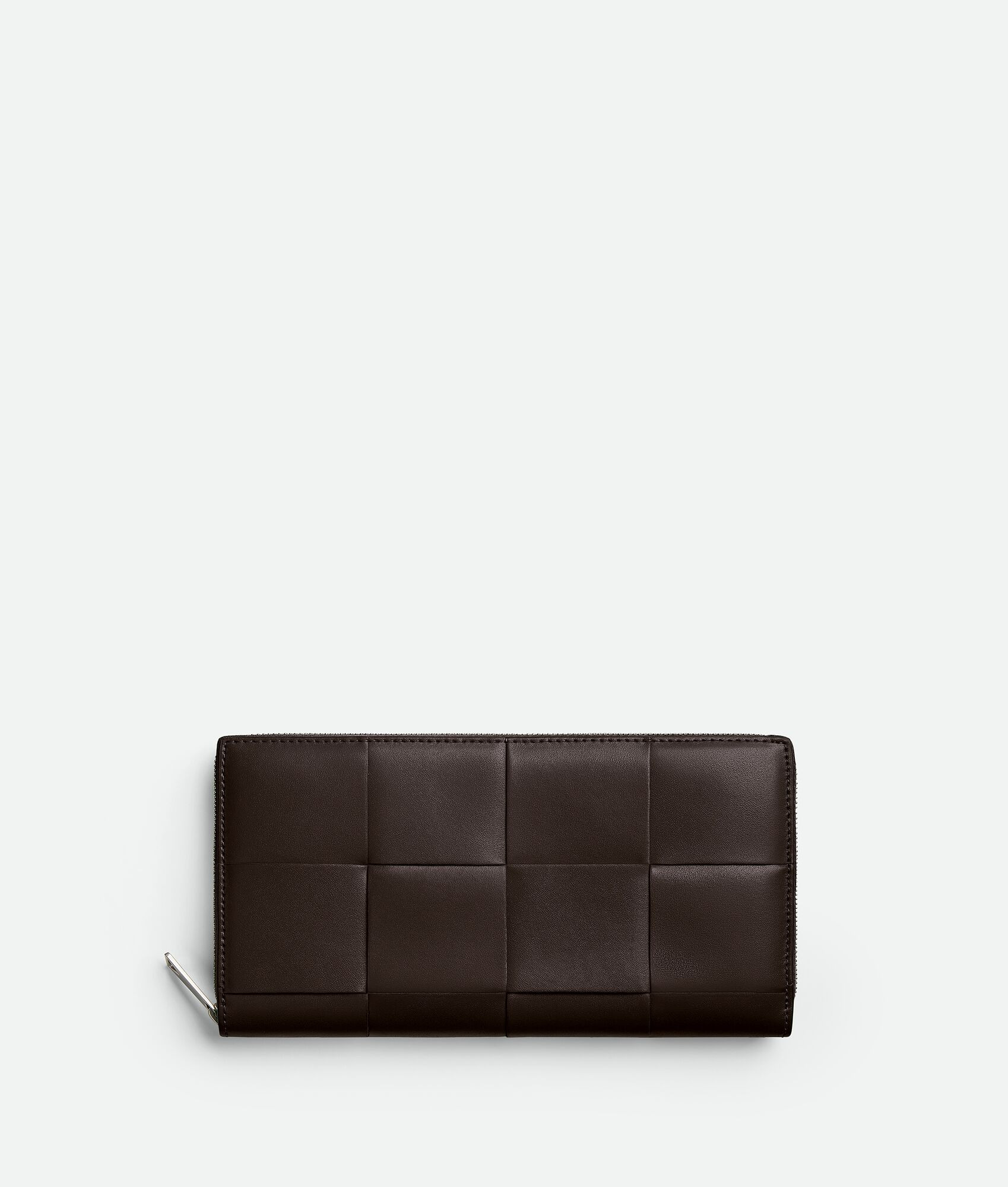 • Intrecciato leather wallet • Twelve card slots, two bill compartments, two additional pockets, one zipped coin purse • Zipped closure Material: 100% Calfskin • Lining: Calfskin • Color: Fondant • Hardware: Silver finish • Height: 11.4 cm • Width: 19 cm • Depth: 2 cm Made in: italy