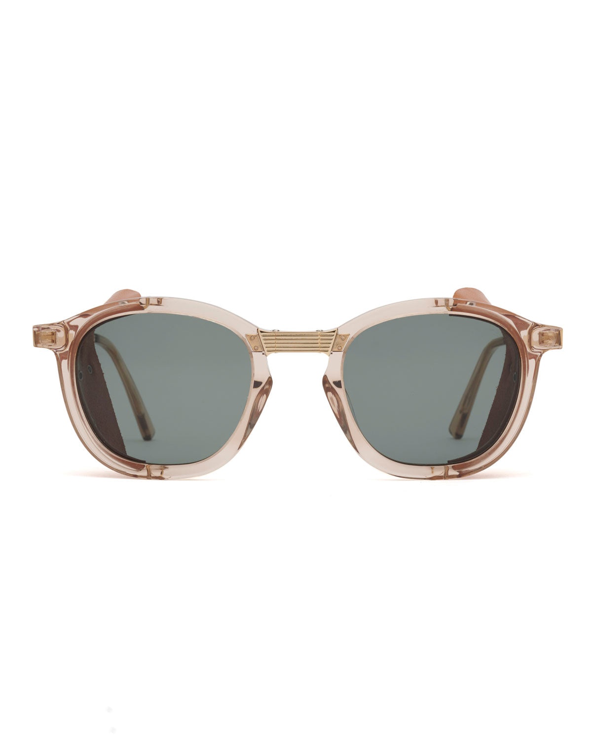 DETAILS Our foldable eyewear made in collaboration with South2 West8. Features polarized lenses and genuine leather side shields. Material: 100% Acetate / 100% Leather Color: Amber Sizing (lens width - bridge width - temple length): 51-22-145 mm