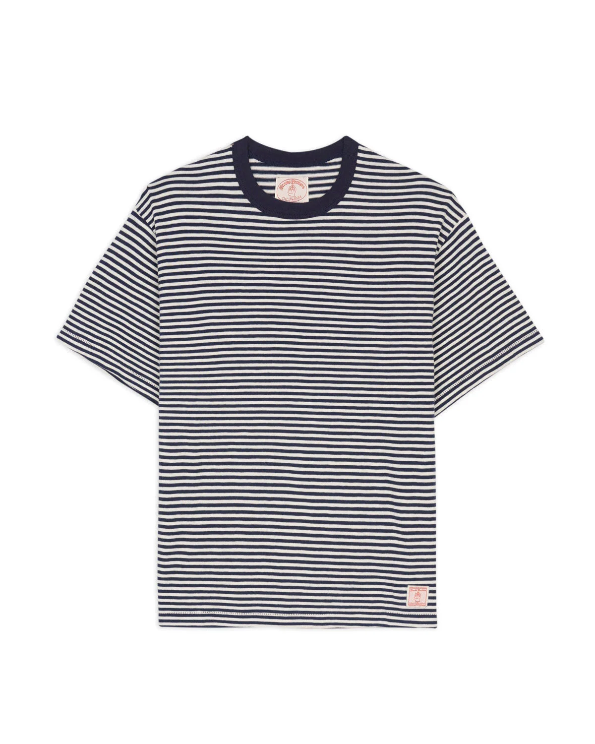 DETAILS Our loose knit striped short sleeve T-Shirt with Brooks Brothers. Features single needle stitched seams. Material: 100% Cotton Color: Navy BROOKS BROTHERS CALIFORNIA is our take on the idea that this historical brand was not just about suits and shirts, but about the American dream of innovation and creativity. BROOKS BROTHERS CALIFORNIA is not just a repro of Ivy Style, but an attempt to break tradition, adding personal identity to the classic American style.