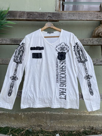 Please read all the description carefully before buying..if you have any questions feel free to ask (check details below) Size on tag : L Brand : Bullet Noise 10 eye Material : cotton Colour : white/black Condition : GOOD CONDITION (USED ITEM ) PAYMENT And SHIPPING: ■Accept "PAYPAL" Only ■This item will be ship along with Tracking Number after received a completed payment. No return back after shipped TQ