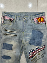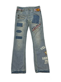 Distressed Denim - Yellow Ranking Rusty Distressed Jeans Flare