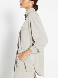 - Relaxed fit - Structured collar - Logo buttons - Hidden placket - Front patch pockets - Pleated, button cuffs - Slightly curved hem - 100% Cashmere - Natural Fiber - Imported - Model is 5'9" and is wearing a size Small One of our favorite new styles, our Andre Luxe Cashmere Shacket is the epitome of versatility. In a relaxed silhouette this shirt/jacket can be worn as a fluid top or open as a chic little layering piece. With our new logo buttons, front patch pockets and feminine peated, button cuffs, Andre has all of the special details you love. A structured collar and split cuffs add dimension to the fluid shape so that it truly feels like a jacket or a shirt depending on your every style need. Part of our new ‘Kinder To The Environment’ collection, this natural fiber knit is made from RWS-certified, traceable yarn which means it adheres to stringent animal welfare standards.