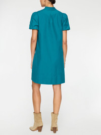 - Runs true to size - Stand collar - Fully lined puff sleeves - Front placket - On seam pockets - Self-faced hem with side slits - 34” length - 65% Polyester, 35% Cotton - Imported - Model is 5'9" and is wearing a size Small Discover a new-season favorite. The Cameron Dress is crafted with a ruffle collar and puff sleeves to create an effortlessly romantic silhouette. Finished with a stand collar and front placket with double needle top stitching at both sides.