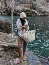- Tote silhouette - Top handle - Basket weave with crochet overlay - Handmade - Basket 100% Palm Leaves/Crochet 100% Viscose - Dimensions: 19" × 12" - since these are handmade, dimensions can vary - 3 lbs. - Made in Morocco “Perfect for the summer, whether you’re headed to the beach, a pool party or happy hour… Very chic.” — InTouch Weekly The perfect summer bag, our Dune Basket Bag is handmade by Women Artisans in Morocco. This basketweave tote features an ecru crochet overlay that adds tonal texture and dimension. The top handle has been designed to carry with ease, while the bucket shape makes this the perfect bag to shop or travel with. Take it to the beach and beyond. Embracing its handmade beauty, dimensions and design of the crochet overlay can vary. These imperfections are not considered defective. Exclusive to BrochuWalker.com and our Brochu Walker Atlanta, Carmel-by-the-Sea, Southampton & Westport Stores.