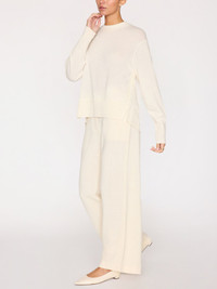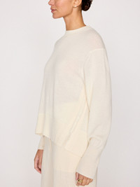 - Runs true to size - Relaxed fit - Crewneck - Mixed gauge trims at neck and side seams - Forward side seam detailing with cut fringe detailing and hem splits. - Long sleeves - 100% Cashmere - Imported - Model is 5'9" and is wearing a size Small The newest addition to our signature, fringe sweater collection, our Fenton Crewneck Fringe Sweater, in a luxe, all-season cashmere, is that effortless piece that is still so special. Mixed gauge, self-fringe trim details accent the sensual, forward side seams of this easy crewneck, adding that touch of Brochu Walker drama you love, while a relaxed fit allows for comfort, making this the sweater you will cherish as the temperatures starts to cool. Part of our ‘Kinder To The Environment’ collection, it is made RWS-certified, traceable yarn which means it adheres to stringent animal welfare standards.