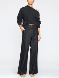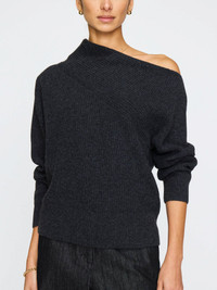 - Runs true to size - Relaxed fit - Long sleeves - Ribbed cuffs and hem - Angled neckline - Directional rib stitch - 83% Viscose, 17% Nylon - 45% Merino Wool, 10% Cashmere, 25% Viscose, 20% Polyamide Italian Yarn - Imported - Model is 5'9" and is wearing a size Small The Hart Off-Shoulder Sweater updates a classic style with an engineered rib stitch that allows it to fall effortlessly on one shoulder. Perfectly blending comfort, weight, and elegance, this Italian wool cashmere piece is a seasonal must-have.