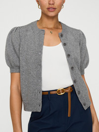 - Runs true to size - Hits at high hip - Boxy fit - Feminine sleeve with gathered shoulder detail - Short sleeves - Button front - 45% Organic Cotton, 27% Recycled Poly, 25% RWS Extra fine Merino, 3% Spandex - 20 ½” length (Size S) - Imported - Model is 5'9" and is wearing a size Small The latest addition to our ‘Havana’ collection, the Havana Cardigan is a slightly structured, boxy-fitting cardigan with short sleeves and feminine gathering on the shoulders. A polished yet effortless layering essential.