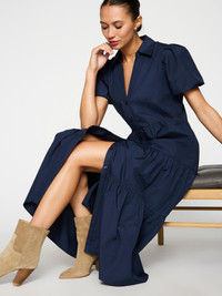- Runs true to size - Relaxed fit - Length- XS: 48", S: 49 ", M: 50", L: 51", XL: 52" - Chest Measurements- XS: 34 ½” – 35 ½”, S: 36 ½” – 37 ½”, M: 38 ½” – 39 ½”, L: 41 ½ - 42 ½”, XL: 44 ½” – 45 ½” - Tiered skirt - V-neckline - Puff sleeves - Button front placket - Washed cotton finish - 65% Polyester/35% Cotton - Imported - Model is 5'9" and is wearing a size Small "Easy, Breezy Perfection" — InStyle.com "Brochu Walker’s tiered shirt dress construction is endlessly flattering…” — Forbes The Havana, the dress we are known for, is the iconic Brochu Walker essential. In a sophisticated, signature silhouette, this navy dress is assured to take you from season to season. A tiered skirt and puff sleeves give a definitive feminine appeal, while the collared v-neck and button front placket, make it as chic as it is versatile. Designed to be worn belted or loose and flowing, it is the one piece that can take you everywhere. Shop The Havana Collection
