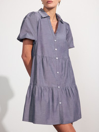 - Runs true to size - Relaxed fit - Mini length, 36" on size Small - Chest Measurements: XS: 36” / S: 37 ½” / M: 39 ½” / L: 42 ½” - Tiered skirt - V-neckline - Button front placket - Puff sleeves - On seam pockets - 65% Polyester/35% Cotton - Imported - Model is 5'9" and is wearing a size Small Our most loved Havana Dress is now available in a new mini length. Like its big sister, a tiered skirt and puff sleeves give a definitive feminine appeal, while the collared V-neck and button front placket, make it as chic as it is versatile. We added on seam pockets for added functionality making it perfect for every day, everywhere. Shop The Havana Collection
