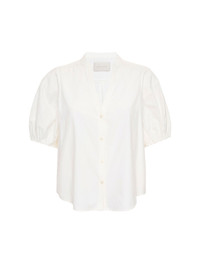 - Runs true to size - Button front - Stand collar - V-neckline - 65% Polyester, 35% Cotton - Imported - Model is 5'9" and is wearing a size Small Offered in luxe neutral, the Hollis Shirt features a stand collar and button front placket with top stitching at both sides for a special edge detailing. A perfect mix of European design with a nostalgic East coast ease, the sleeves feature a mid-bicep curved seam and gathers into self- binding with a loose fit to create an easy style with a sophisticated flair.